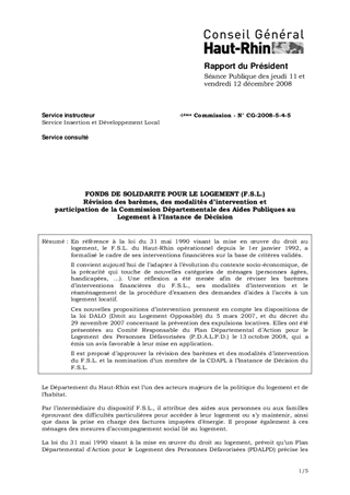 FONDS DE SOLIDARITE POUR LE LOGEMENT (F.S.L.) Révision des barèmes, des modalités d’intervention et participation de la Commission Départementale des Aides Publiques au Logement à l’Instance de Décision