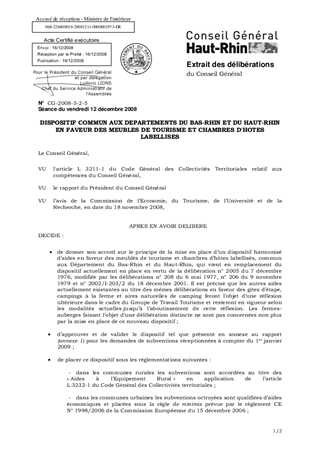 DISPOSITIF COMMUN AUX DEPARTEMENTS DU BAS-RHIN ET DU HAUT-RHIN EN FAVEUR DES MEUBLES DE TOURISME ET CHAMBRES D'HOTES LABELLISES