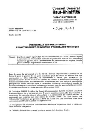 Le présent rapport a pour objet d'autoriser le Président du Conseil Général à signer la convention de reconduction triennale du partenariat avec le SDIS concernant l'assistance apportée par le Département dans la gestion technique du patrimoine immobilier du SDIS.