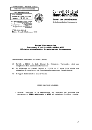 Routes DépartementalesProgrammes N° A011 - A032 - A034 et A035 Affectation et désaffection des autorisations de programme