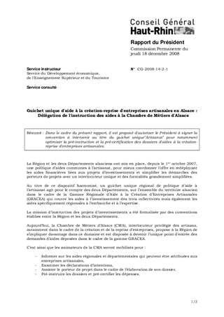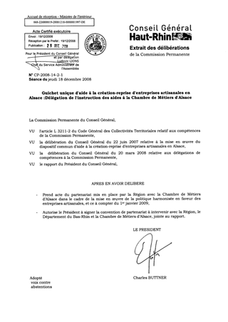 Guichet unique d'aide à la création-reprise d'entreprises artisanales en Alsace :Délégation de l'instruction des aides à la Chambre de Métiers d'Alsace
