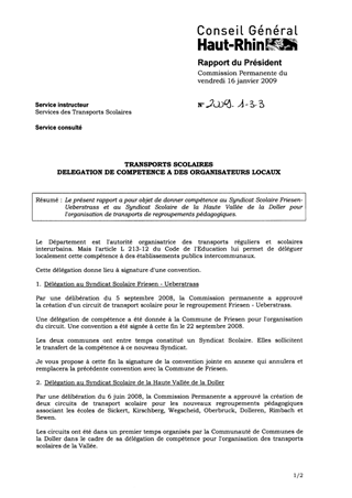 le présent rapport a pour objet de donner compétence au Syndicat Scolaire Friesen-Ueberstrass et au Syndicat Scolaire de la Haute Vallée de la Doller pour l'organisation de transports de regroupements pédagogiques.