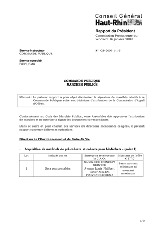 Le présent rapport a pour objet d’autoriser la signature de marchés relatifs à la Commande Publique suite aux décisions d’attribution de la Commission d’Appel d’Offres.