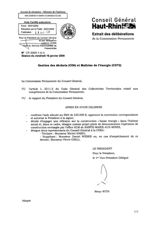 Dans le domaine de la gestion des déchets, le rapport propose de reconduire pour un an l'aide de 230 000 € apportée au SM4. Concernant le domaine de l'énergie, il aborde la problèmatique de la maîtrise de l'énergie dans l'habitat social et propose la désignation d'un représentant du Conseil Général à la CREA (Conférence Régionale de l'Energie en Alsace).