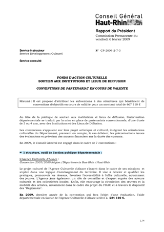 FONDS D'ACTION CULTURELLE SOUTIEN AUX INSTITUTIONS ET LIEUX DE DIFFUSION CONVENTIONS DE PARTENARIAT EN COURS DE VALIDITE