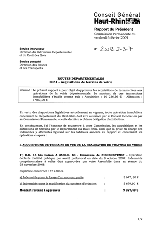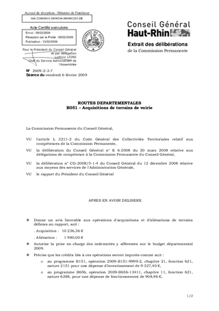 ROUTES DEPARTEMENTALESB051 – Acquisitions de terrains de voirie