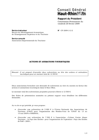 Il est proposé d'accorder deux subventions au titre des actions et animations touristiques pour un montant total de 12 500 €.