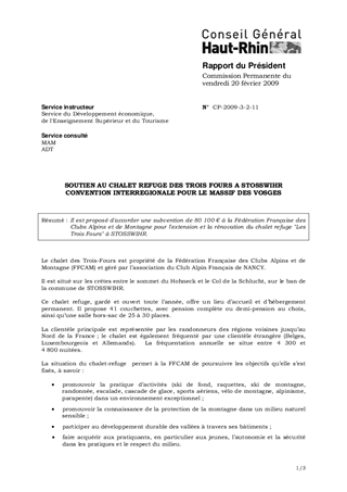 SOUTIEN AU CHALET REFUGE DES TROIS FOURS A STOSSWIHR - CONVENTION INTERREGIONALE POUR LE MASSIF DES VOSGES