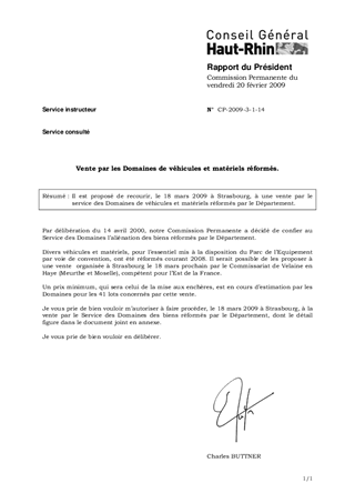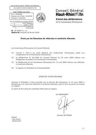 Il est proposé de recourir, le 18 mars 2009 à Strasbourg, à une vente par le service des Domaines de véhicules et matériels réformés par le Département.