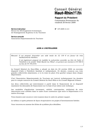 Il est proposé d'accorder une aide totale de 32 109 € en faveur de trois établissements hôteliers. Il est également proposé de modifier la subvention accordée au titre de l'aide à l'hôtellerie à la société "Hôtel Munier Au Tilleul", en portant son montant à 49 488 € au lieu de 44 704,50€.