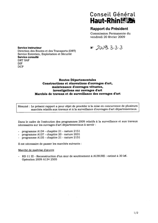 Le présent rapport a pour objet de procéder à la mise en concurrence de plusieurs marchés relatifs aux travaux et à la surveillance d'ouvrages d'art départementaux.