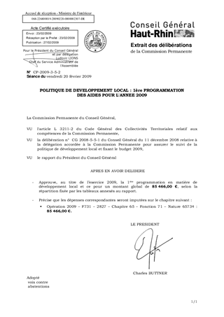 Programmation définitive, au titre de l'exercice 2009, des opérations de développement local telles qu'elles figurent en annexe du rapport pour un montant global de 85 466,00 Euros.