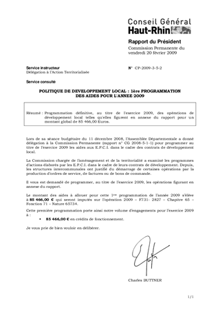 POLITIQUE DE DEVELOPPEMENT LOCAL : 1ère PROGRAMMATION DES AIDES POUR L'ANNEE 2009