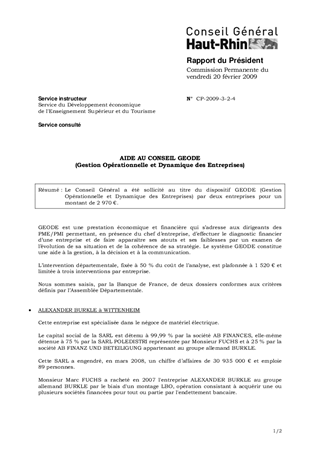Le Conseil Général a été sollicité au titre du dispositif GEODE (Gestion Opérationnelle et Dynamique des Entreprises) par deux entreprises pour un montant de 2 970 €.