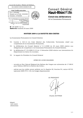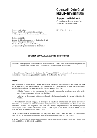 Il est proposé d'accorder une subvention de 17 000 € au Parc Naturel Régional des Ballons des Vosges pour l'édition 2009 de la Navette des Crêtes.