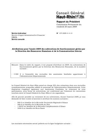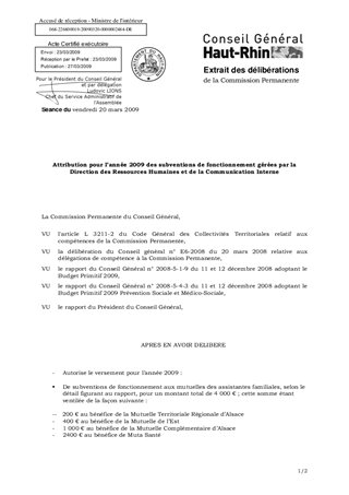 Attribtions de subventions de fonctionnement aux mutuelles complémentaires auxquelles adhèrent les assistantes familiales du Conseil Général du Haut-Rhin.