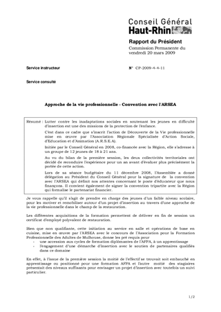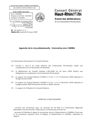 Lutter contre les inadaptations sociales en soutenant les jeunes en difficulté d’insertion est une des missions de la protection de l’enfance. C’est dans ce cadre que s’inscrit l’action de Découverte de la Vie professionnelle mise en œuvre par l’Association Régionale Spécialisée d’Action Sociale, d’Education et d’Animation (A.R.S.E.A). Initiée par le Conseil Général en 2008, co-financée avec la Région, elle s’adresse à un groupe de 12 jeunes de 18 à 21 ans. Au vu du bilan de la première session, les deux collectivités territoriales ont décidé de reconduire l’expérience pour un an avant d’évaluer plus précisément la portée de cette action. Lors de sa séance budgétaire du 11 décembre 2008, l’Assemblée a donné délégation au Président du Conseil Général pour la signature de la convention avec l’ARSEA qui définit nos attentes concernant le poste d’éducateur que nous finançons. Il convient également de signer la convention tripartite avec la Région qui formalise le partenariat financier.