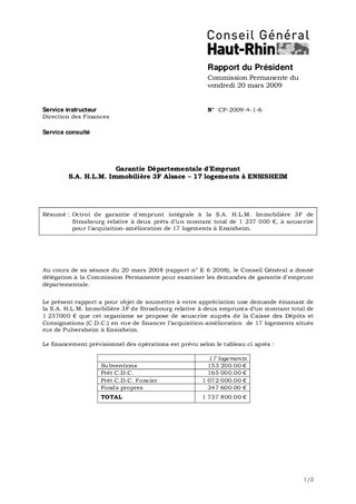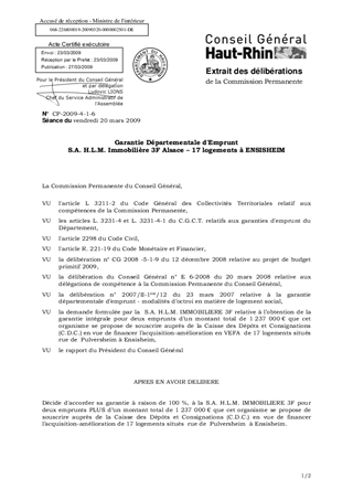 Garantie Départementale d'Emprunt S.A. H.L.M. Immobilière 3F Alsace – 17 logements à ENSISHEIM
