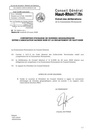CONVENTION D’ECHANGE DE DONNEES GEOGRAPHIQUES ENTRE L’ASSOCIATION SAUMON RHIN ET LE DEPARTEMENT DU HAUT-RHIN