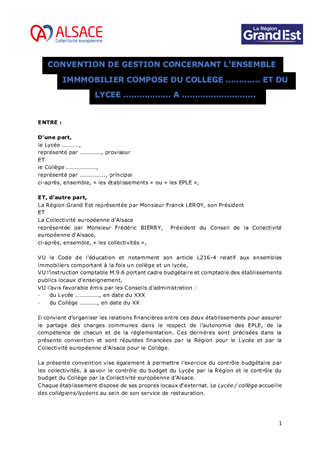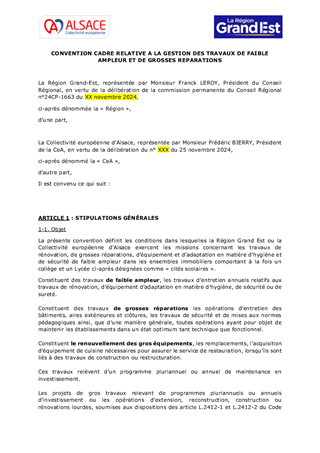 CONVENTION CADRE COLLECTIVITE EUROPÉENNE D'ALSACE-RÉGION GRAND EST RELATIVE AU FONCTIONNEMENT DES ENSEMBLES IMMOBILIERS