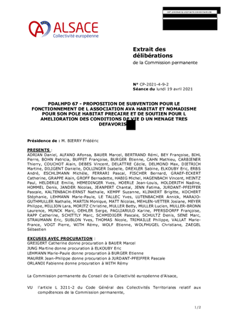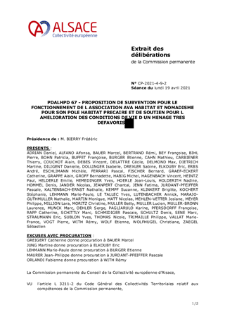 PDALHPD 67 - PROPOSITION DE SUBVENTION POUR LE FONCTIONNEMENT DE L ASSOCIATION AVA HABITAT ET NOMADISME POUR SON POLE HABITAT PRECAIRE ET DE SOUTIEN POUR L AMELIORATION DES CONDITIONS DE VIE D UN MENAGE TRES DEFAVORISE