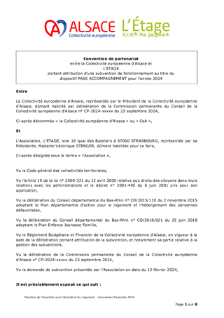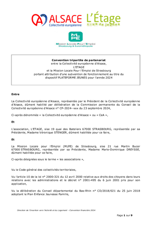 Le contexte actuel de notre territoire met en lumière les difficultés d’accès à l’insertion et l’autonomie des jeunes de 18 à 25 ans, notamment pour les plus précaires d’entre eux. Ils sont davantage impactés par l’inflation, les emplois précaires, les difficultés relatives à l’accès au logement autonome et à l’hébergement. La Collectivité européenne d'Alsace contribue à la recherche de solutions pour ces publics, au travers de 3 dispositifs destinés à soutenir l’insertion socio professionnelle et l’accès au logement des jeunes. A cela s’ajoute, CapLoji mis en œuvre par AMITEL et financé par la CeA depuis 2015. Ces dispositifs ont permis, pour l’année 2023, à 1 153 jeunes en situation de précarité de bénéficier d’un suivi socio professionnel au sein de la Plateforme Jeunes, 38 d’un hébergement et d’un accompagnement adapté en Colocation Coachée, 344 ont été suivis dans le cadre du dispositif Pass'Accompagnement et 172 jeunes ont été accueillis, informés, orientés, par le dispositif Cap’Loji. Il est proposé à la Commission permanente de renouveler pour l'année 2024, l’attribution des subventions de fonctionnement aux associations bas-rhinoises en charge des dispositifs dédiés aux jeunes pour un montant total de 680 056 € et d’approuver les termes des conventions à conclure avec les associations bénéficiaires.