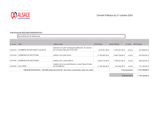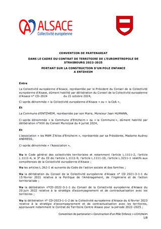 Avec la stratégie d’accompagnement et de contractualisation et les Contrats de Territoire Alsace, la Collectivité européenne souhaite impulser une dynamique de coopération et de partenariats qui renforcent la résilience autour de projets fédérateurs à fort potentiel de développement pour chaque territoire d’action. Pour faire face aux grands défis énergétiques, écologiques, de cohésion sociale et d’attractivité, la Collectivité européenne d'Alsace a mis en place le Fonds Attractivité Alsace qui a vocation à apporter un soutien financier à la réalisation de projets qui répondent aux enjeux du Territoire de l’Eurométropole de Strasbourg, à des besoins non couverts, porteurs de développement et de transformation des territoires et améliorent le Service public alsacien. Au titre de ce fonds, il est proposée à l’Assemblée d’attribuer des subventions d’investissement d’un montant total de 1 178 125 € afin de soutenir 4 projets, d’approuver les termes des conventions de partenariat à conclure dans le cadre du Fonds Attractivité et d’autoriser le Président à les signer, ainsi que la convention financière.