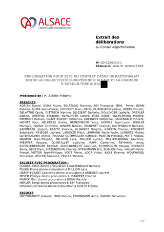 PROLONGATION POUR 2025 DU CONTRAT CADRE DE PARTENARIAT ENTRE LA COLLECTIVITÉ EUROPÉENNE D'ALSACE ET LA CHAMBRE D'AGRICULTURE ALSACE