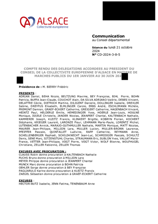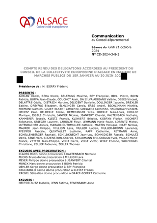 COMPTE RENDU DES DELEGATIONS ACCORDEES AU PRESIDENT DU CONSEIL DE LA COLLECTIVITE EUROPEENNE D'ALSACE EN MATIERE DE MARCHES PUBLICS DU 1ER JANVIER AU 30 JUIN 2024