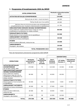 PROGRAMMES D'INVESTISSEMENTS 2024 DES SYNDICATS MIXTES DE MONTAGNE ET COMPLÉMENTS EN FONCTIONNEMENT