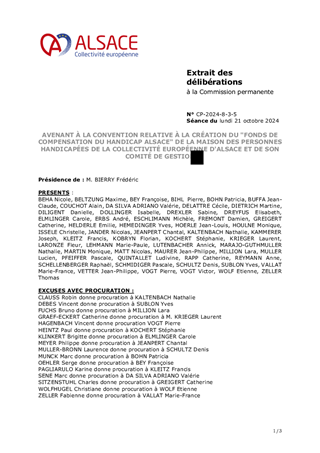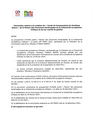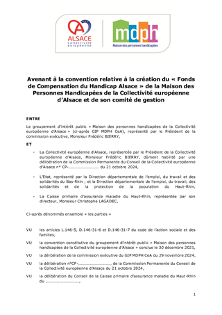 AVENANT À LA CONVENTION RELATIVE À LA CRÉATION DU "FONDS DE COMPENSATION DU HANDICAP ALSACE" DE LA MAISON DES PERSONNES HANDICAPÉES DE LA COLLECTIVITÉ EUROPÉENNE D'ALSACE ET DE SON COMITÉ DE GESTION