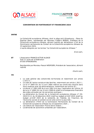 SUBVENTIONA FRANCE ACTIVE ALSACEPOUR DEVELOPPER LES STRUCTURES DE L'ECONOMIE SOCIALE ET SOLIDAIRE EN ALSACE ET ANIMER LE DISPOSITIF LOCAL D'ACCOMPAGNEMENT ALSACIEN