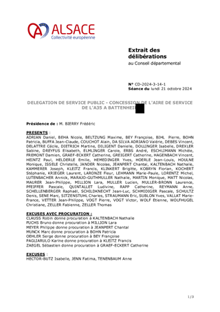DELEGATION DE SERVICE PUBLIC - CONCESSION DE L'AIRE DE SERVICE DE L'A35 A BATTENHEIM