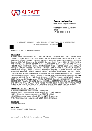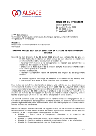 RAPPORT ANNUEL 2024 SUR LA SITUATION EN MATIERE DE DEVELOPPEMENT DURABLE