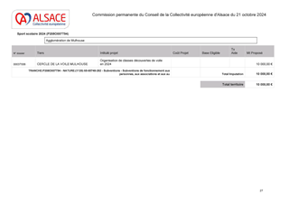 Il vous est proposé dans le présent rapport de voter, au titre du sport scolaire, un soutien à l'Union Générale Sportive de l'Enseignement Libre Alsace (UGSEL Alsace) et aux Services départementaux de l'Union Nationale du Sport Scolaire (UNSS) du Bas-Rhin et du Haut-Rhin, ainsi qu'au Cercle de Voile de Mulhouse (CVM). Le montant total des subventions de fonctionnement à attribuer s'élève à 193 659 € et se répartit comme suit : - 95 907 € à l'UNSS du Bas-Rhin, 69 428 € à l'UNSS du Haut-Rhin et 18 324 € à l'UGSEL Alsace ; - 10 000 € au Cercle de Voile de Mulhouse.