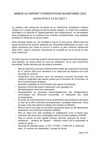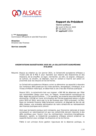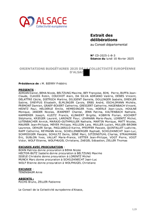 ORIENTATIONS BUDGÉTAIRES 2025 DE LA COLLECTIVITÉ EUROPÉENNE D'ALSACE