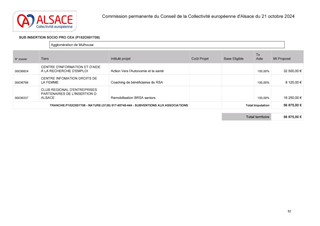 La Collectivité européenne d’Alsace s’engage dans la mise en œuvre du projet France Travail (loi du 18 décembre 2023 pour le plein emploi), portant l'objectif de création de 31 ETP (Equivalents Temps Plein) d'accompagnement. Le présent rapport présente différentes actions opérationnelles déclinant les objectifs de la contractualisation entre l’Etat et la Collectivité européenne d’Alsace. La finalité de ces actions est notamment d’accompagner de manière rapide et personnalisée toutes les personnes bénéficiaires du RSA en difficulté d’accès à l’activité et à l’emploi. Le présent rapport a pour objet l’attribution de subventions de fonctionnement à des structures mettant en œuvre une partie des actions de cette contractualisation pour un montant de total de 295 127 €.
