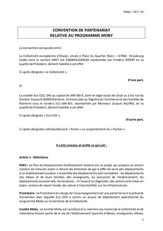 ACCOMPAGNEMENT À LA MISE EN PLACE DE NEUF PLANS DE DÉPLACEMENTS COLLÈGES (PROJET MOBY) - PROPOSITION D'APPROBATION D'UNE CONVENTION À CONCLURE AVEC LA SOCIÉTÉ ECO CO2