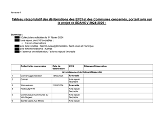 Annexe 4 - tableau récapitulatif des délibérat