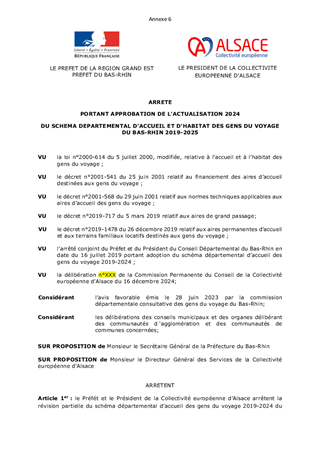 SDAHGV - APPROBATION DES SCHEMAS DÉPARTEMENTAUX D'ACCUEIL ET D'HABITAT DES GENS DU VOYAGE DU BAS-RHIN ET DU HAUT-RHIN