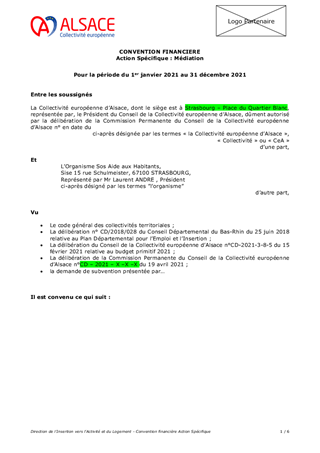 Convention Action Spécifique Sos Aide aux Habitants 2021 -