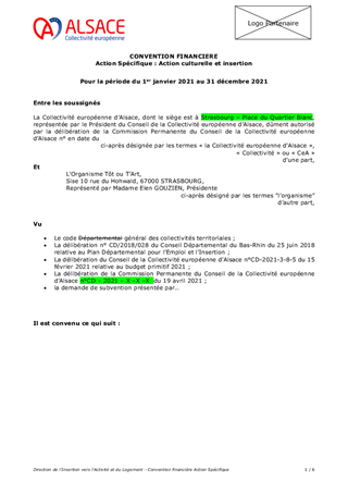 Convention Actions Spécifiques Tôt ou t'Art 2021 -