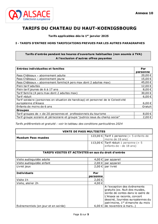 9 Tarifs Hohlandsbourg Boutique 2024 -