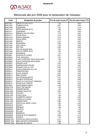 8 Tarifs Vaisseau Cafétéria 2024 -