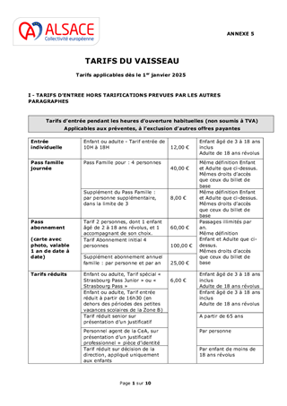 TARIFS 2025 DES REGIES DE RECETTES DE LA COLLECTIVITE EUROPEENNE D'ALSACE