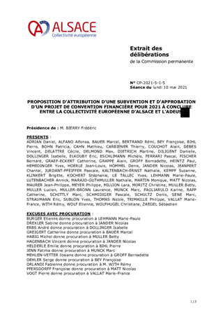 PROPOSITION D'ATTRIBUTION D'UNE SUBVENTION ET D'APPROBATION D'UN PROJET DE CONVENTION FINANCIÈRE POUR 2021 À CONCLURE ENTRE LA COLLECTIVITÉ EUROPÉENNE D'ALSACE ET L'ADEUS.