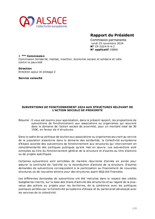 SUBVENTIONS DE FONCTIONNEMENT 2024 AUX STRUCTURES RELEVANT DE L'ACTION SOCIALE DE PROXIMITE
