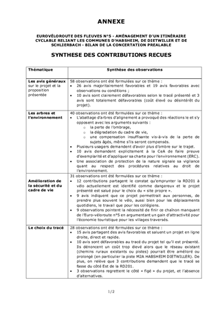 EUROVÉLOROUTE DES FLEUVES N5 - AMÉNAGEMENT D'UN ITINÉRAIRE CYCLABLE RELIANT LES COMMUNES D'HABSHEIM, DE DIETWILLER ET DE SCHLIERBACH - BILAN DE LA CONCERTATION PUBLIQUE