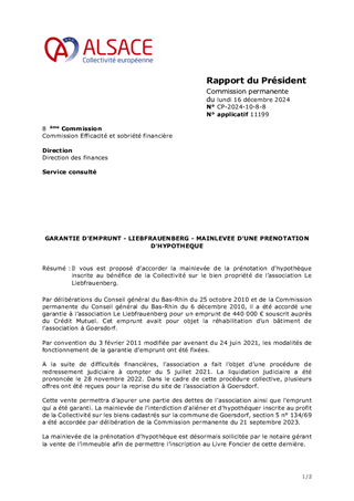 Il vous est proposé d’accorder la mainlevée de la prénotation d'hypothèque inscrite au bénéfice de la Collectivité sur le bien propriété de l’association Le Liebfrauenberg.