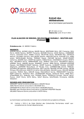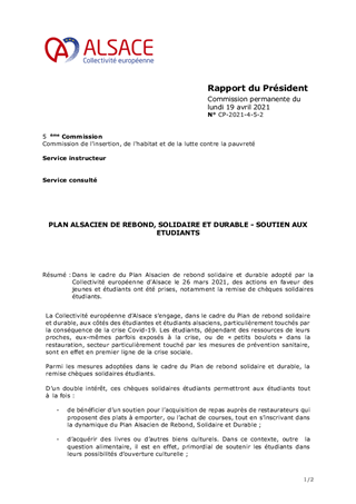 PLAN ALSACIEN DE REBOND, SOLIDAIRE ET DURABLE - SOUTIEN AUX ETUDIANTS